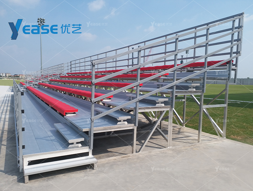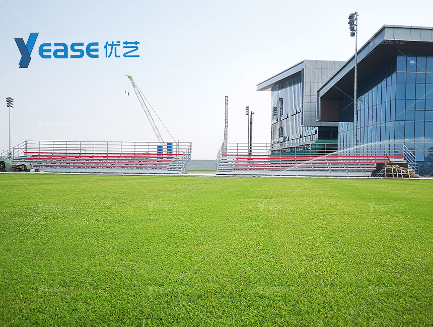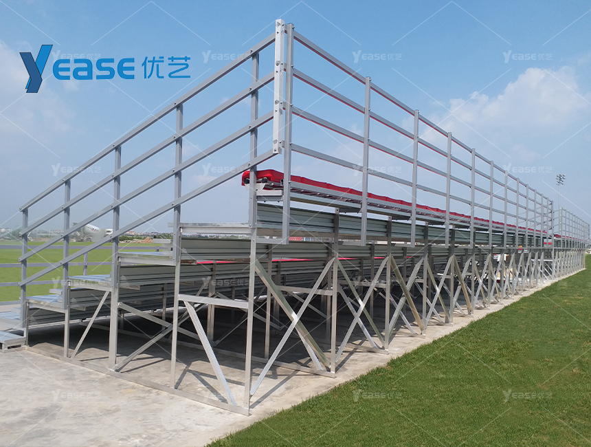 堅固耐用的鋼結構看臺系統(tǒng),滿足戶外場館長期使用與高承載要求。
